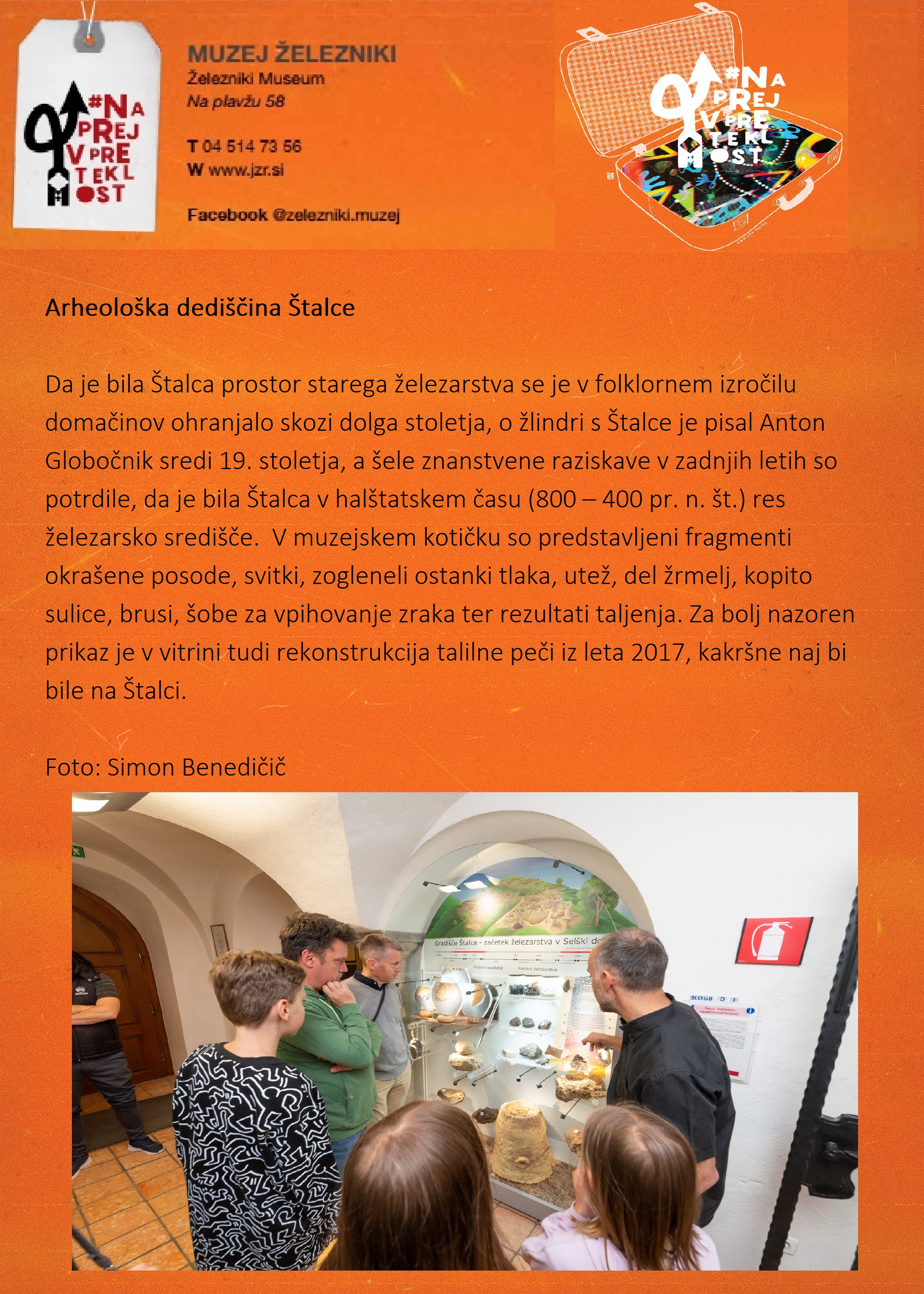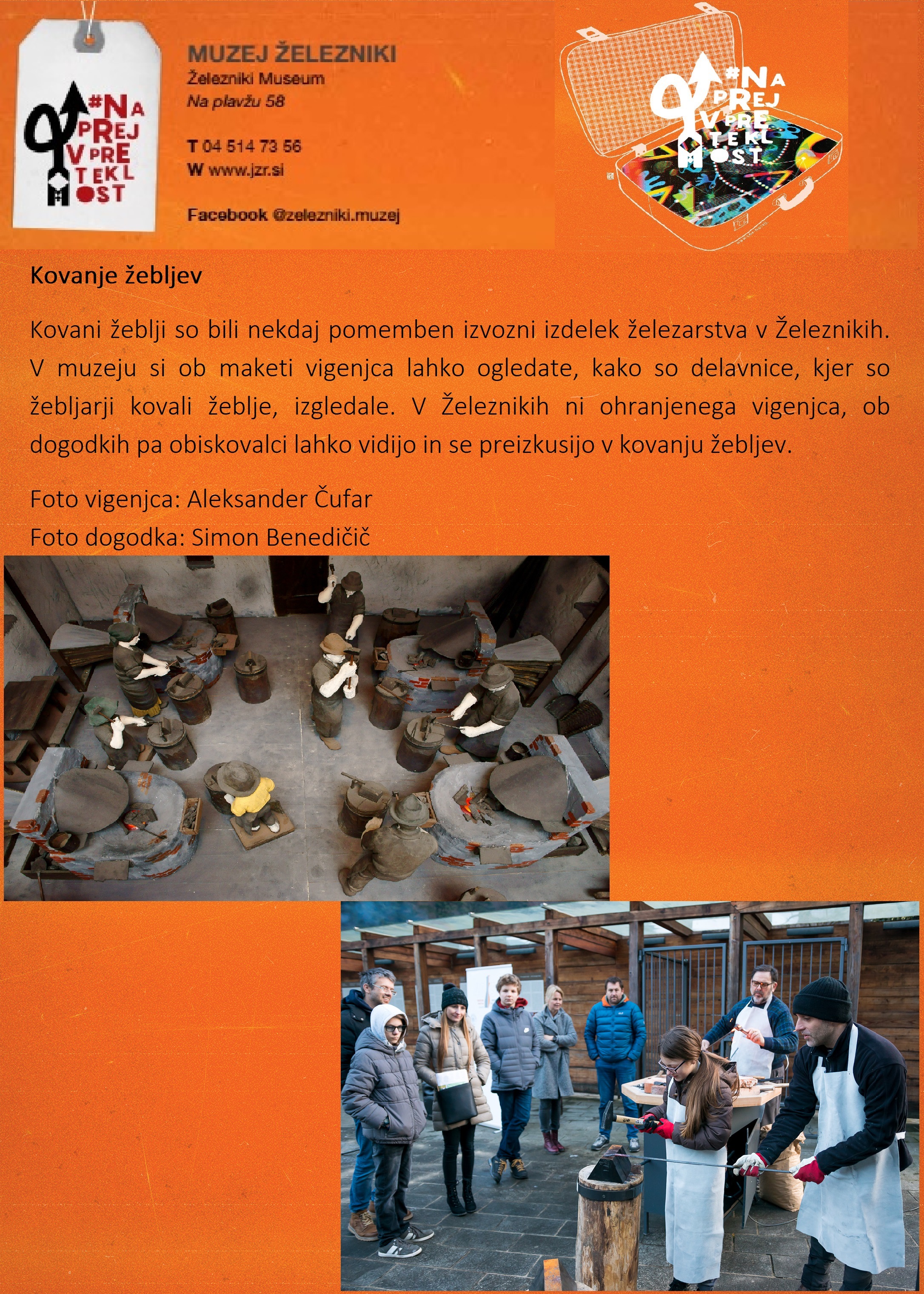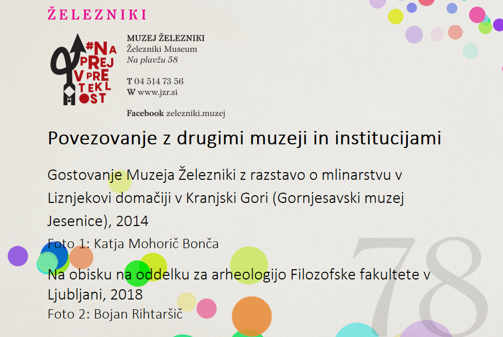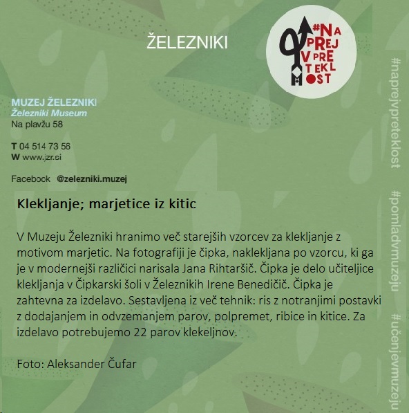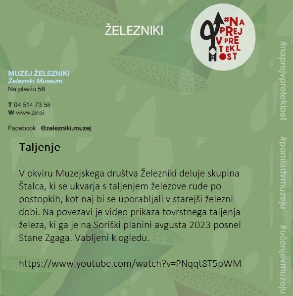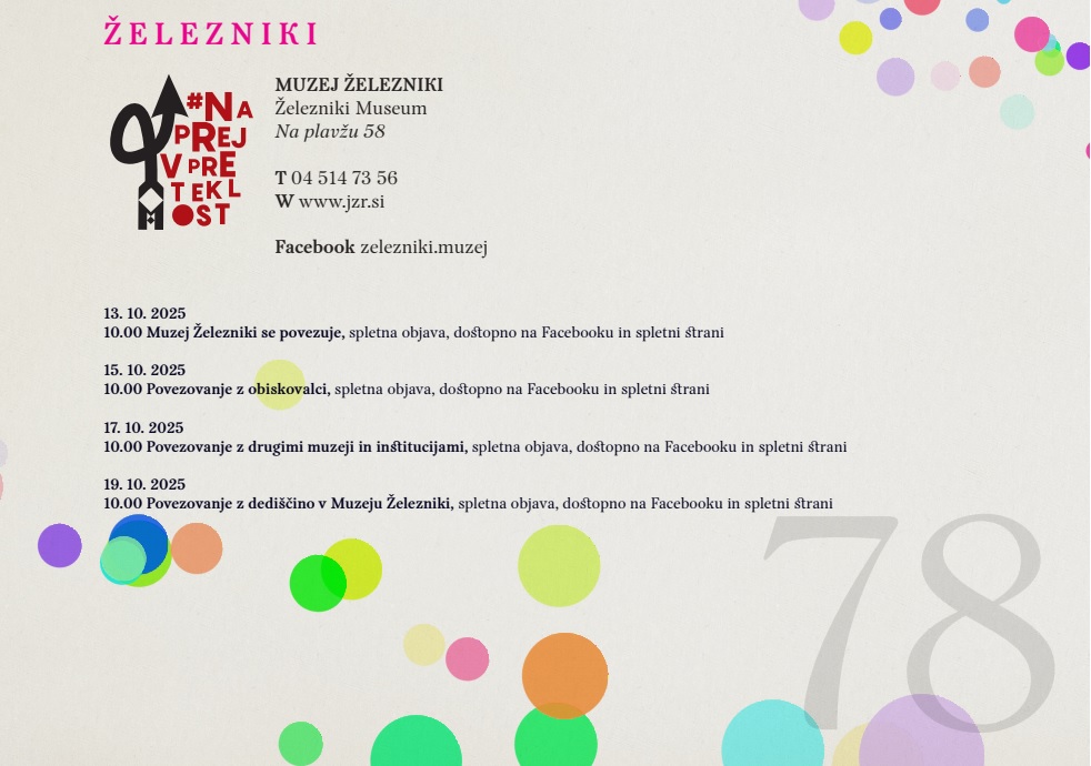 Muzej Železniki se pridružuje slovenski muzejski spletni akciji #naprejvpreteklost. Slovenski muzeji bomo v času med 13. in 19. oktobrom 2025 predstavljali dediščino, ki jo hranimo. Geslo tokratne akcije je "Povezovanje skozi čas".