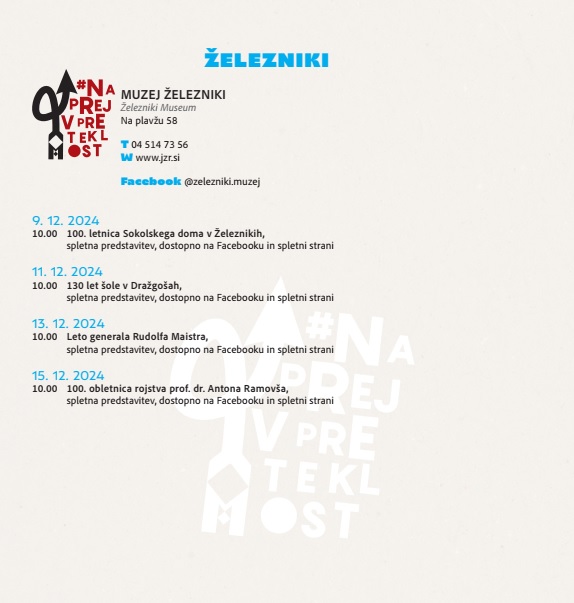 Muzej Železniki se pridružuje slovenski muzejski spletni akciji #naprejvpreteklost. Slovenski muzeji bomo v času med 9. in 15. decembrom 2024 predstavljali dediščino, ki jo hranimo.