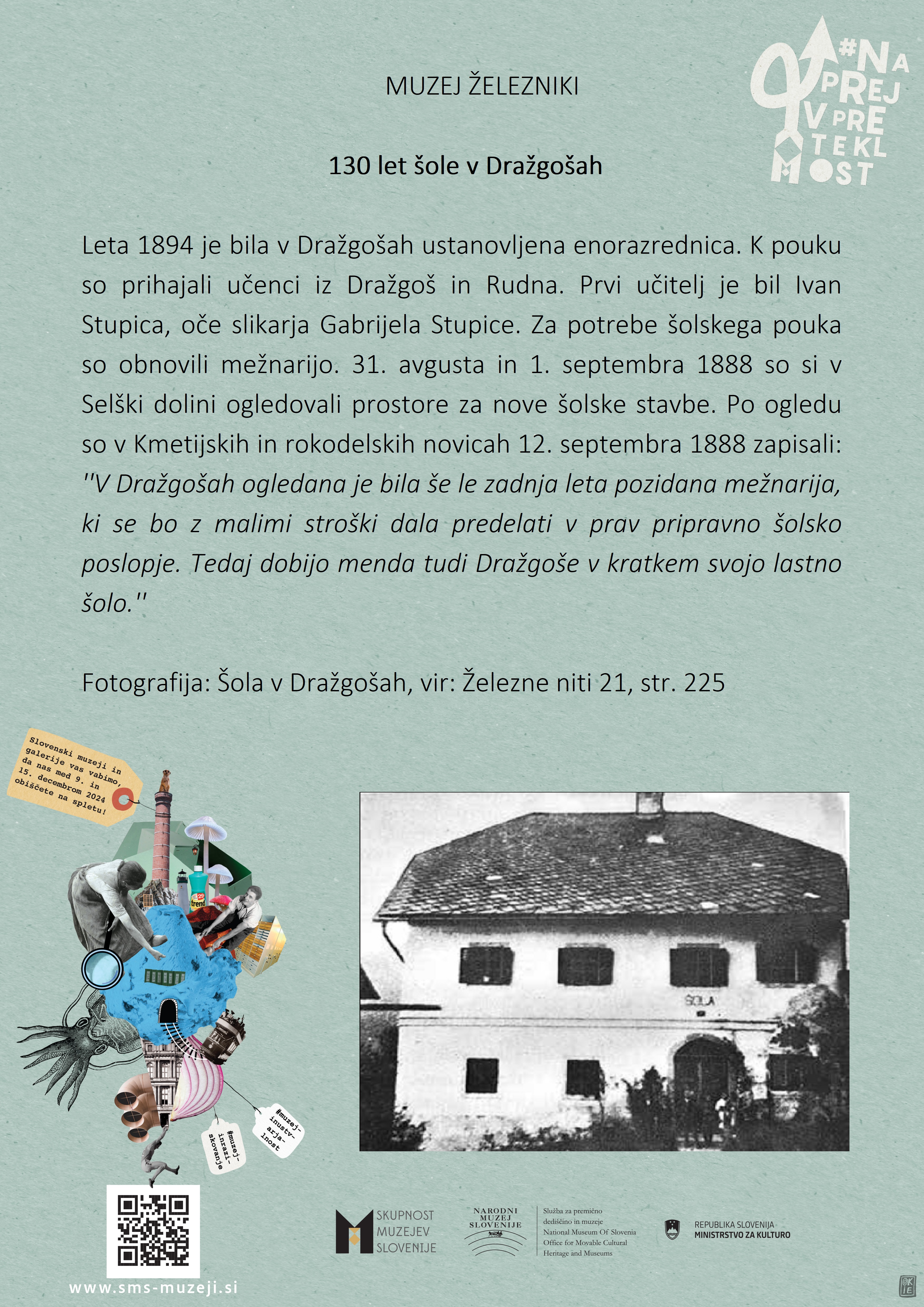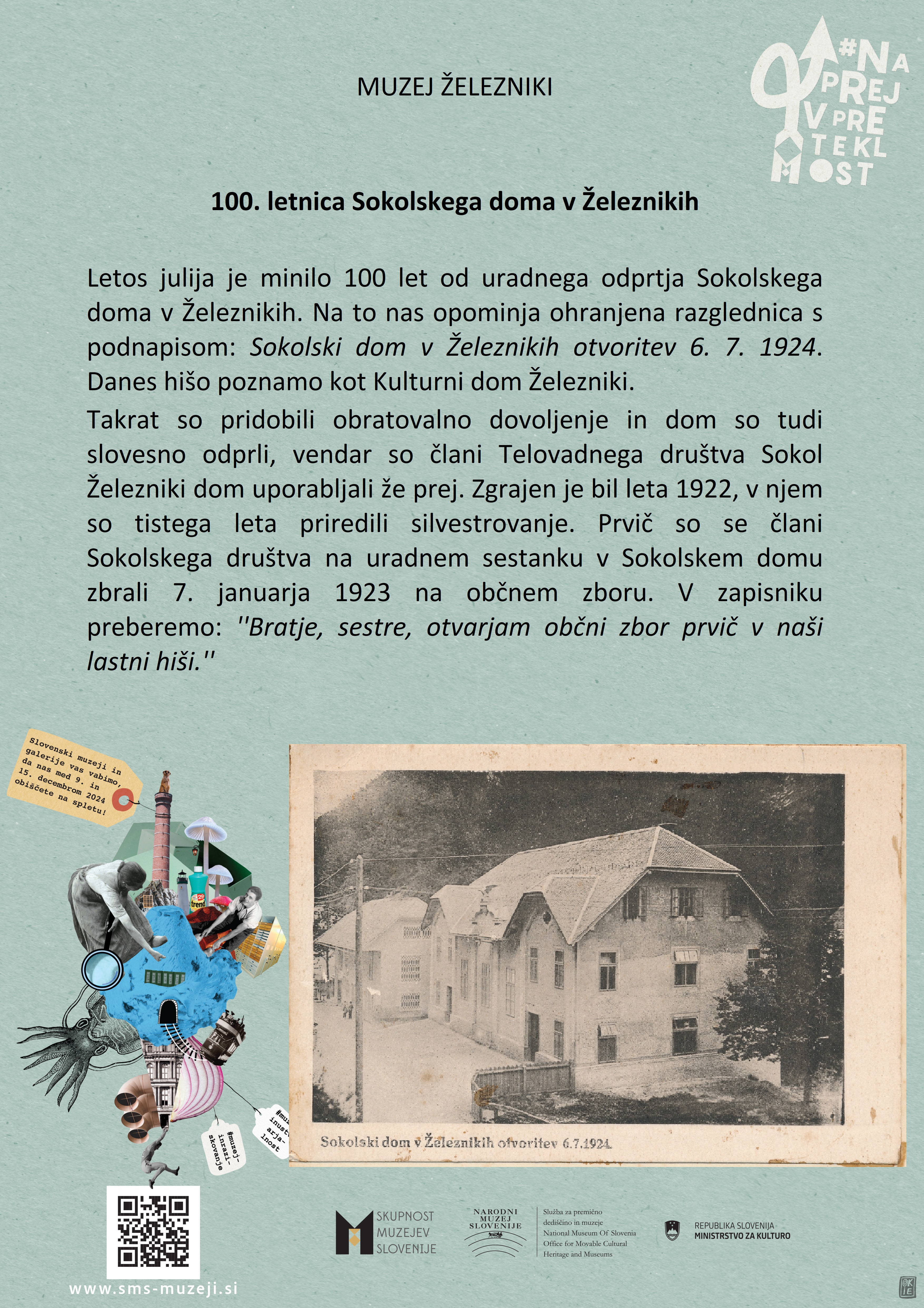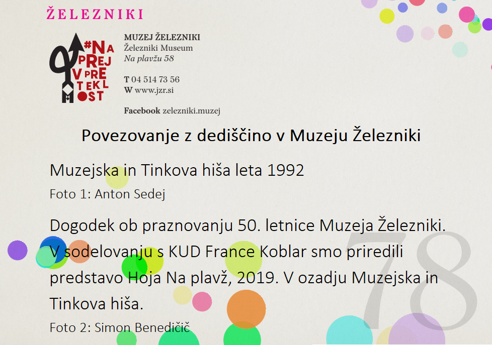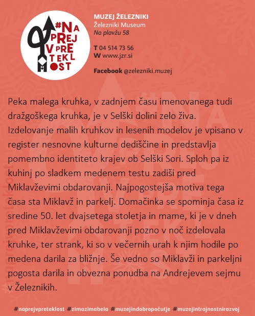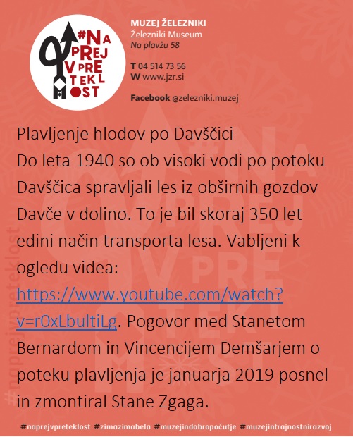 Muzej Železniki se pridružuje slovenski muzejski spletni akciji #naprejvpreteklost. Slovenski muzeji bomo v času med 4. in 10. decembrom 2023 predstavljali dediščino, ki jo hranimo.