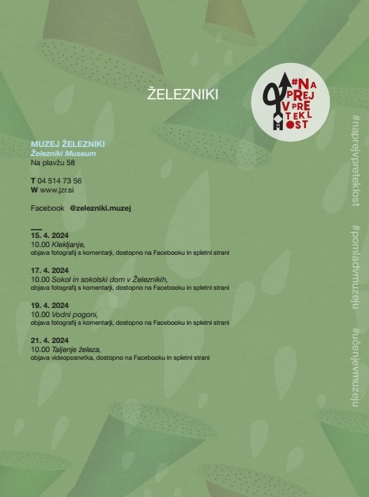 Muzej Železniki se pridružuje slovenski muzejski spletni akciji #naprejvpreteklost. Slovenski muzeji bomo v času med 15. in 21. aprilom 2024 predstavljali dediščino, ki jo hranimo.