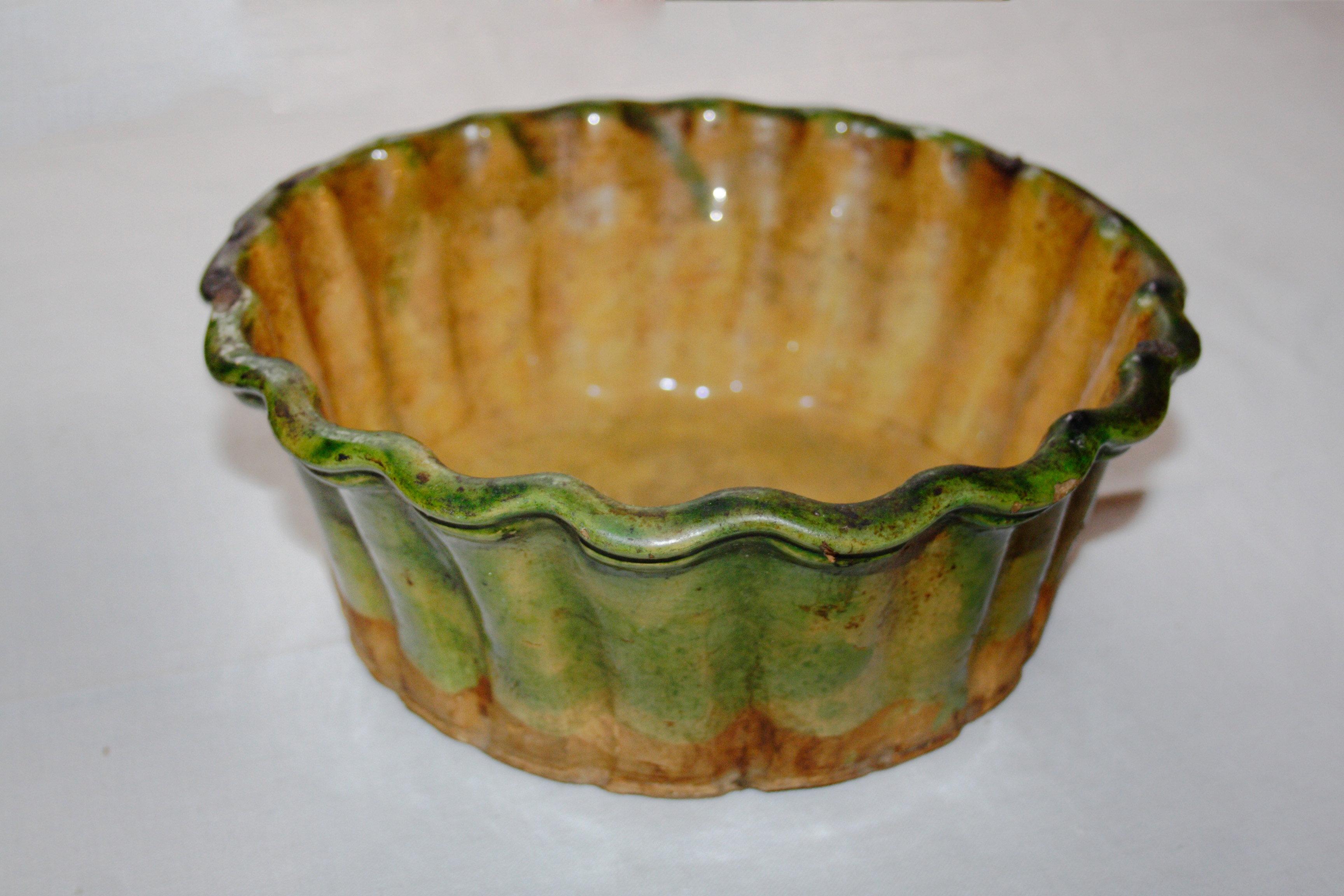 Predstavljen glinen model je oblikovan na lončarskem vretenu in je brez sredinskega