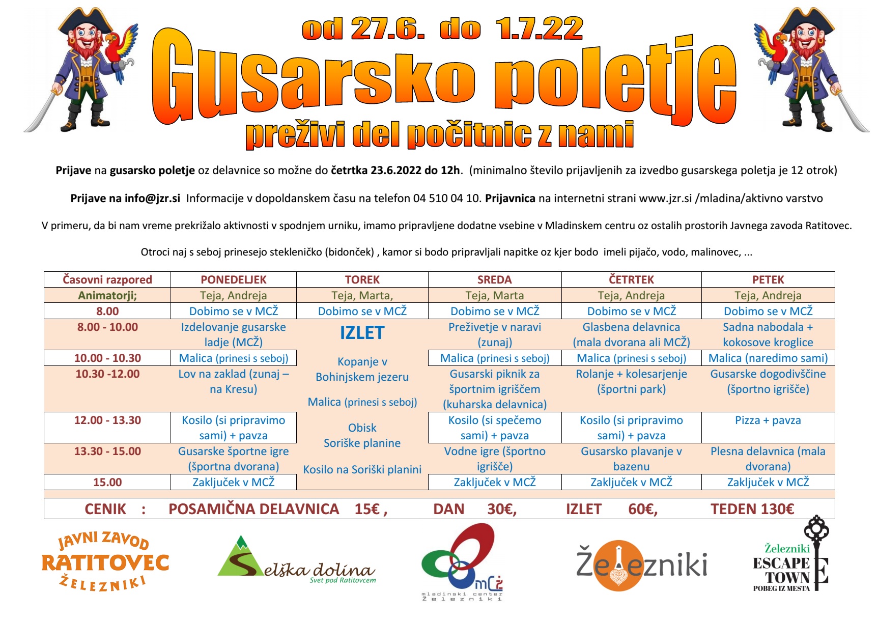 Spodaj si lahko ogledate urnik aktivnosti in dobite tudi prijavnico na gusarsko poletje.