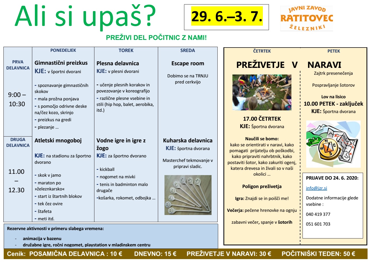 AKTIVNO VARSTVO MED POČITNICAMI