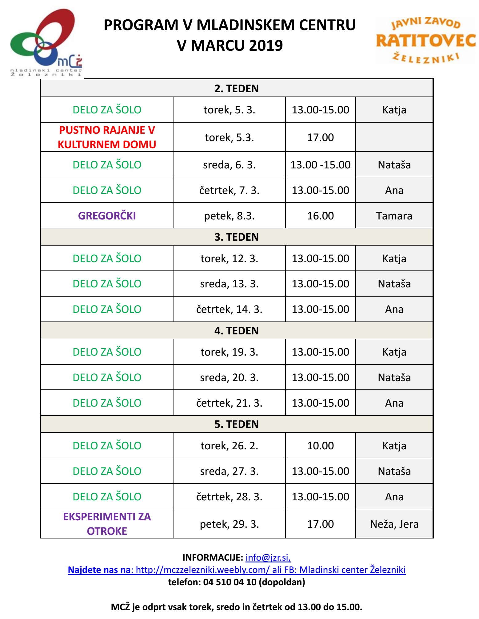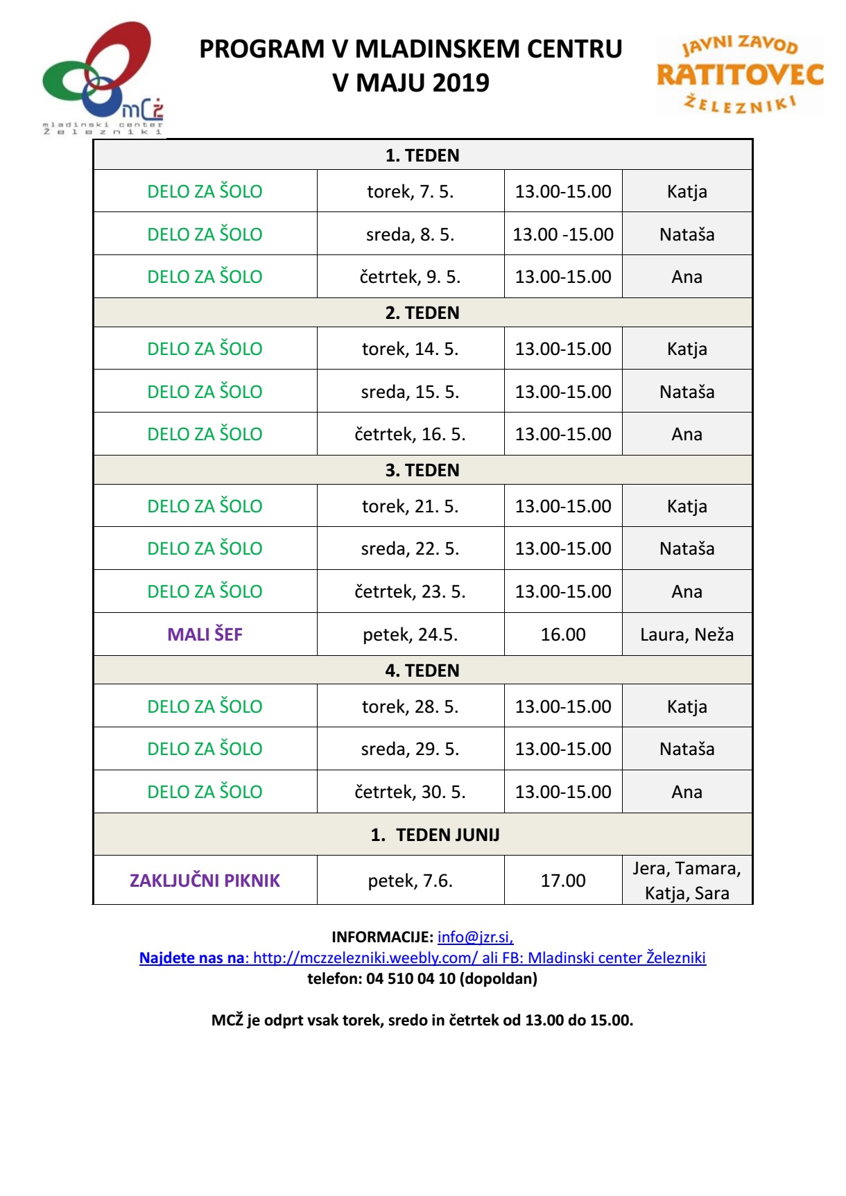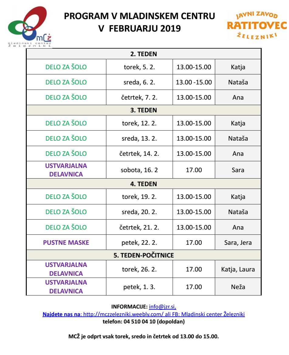 PROGRAM V LETU 2019 (za več informacij, klikni zgoraj na internetna stran MCŽ)