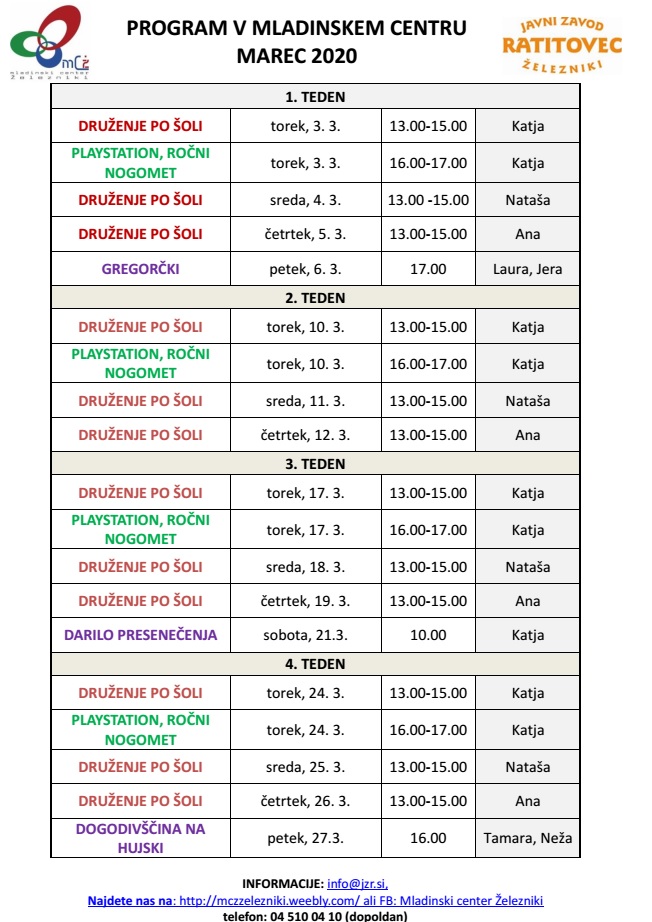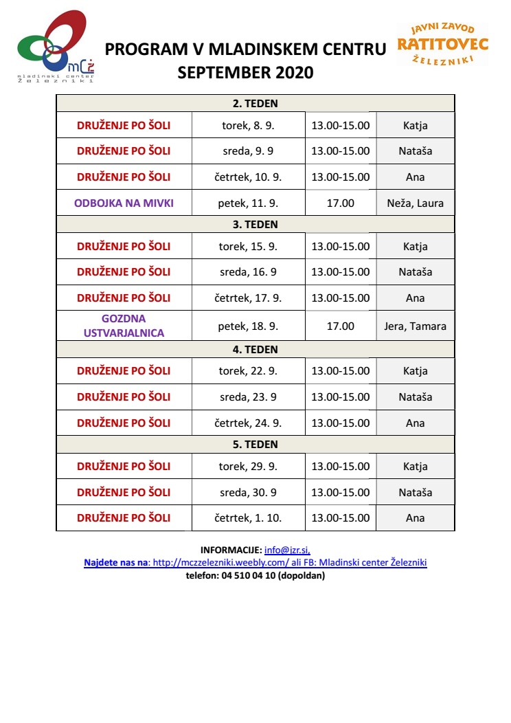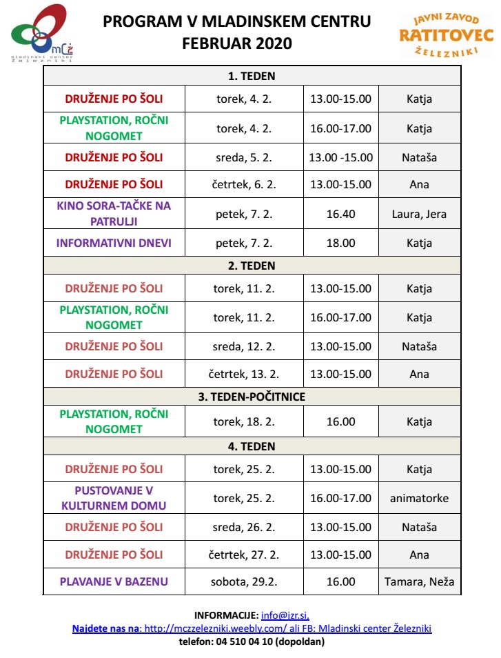 PROGRAM V LETU 2020 (za več informacij klikni tu)