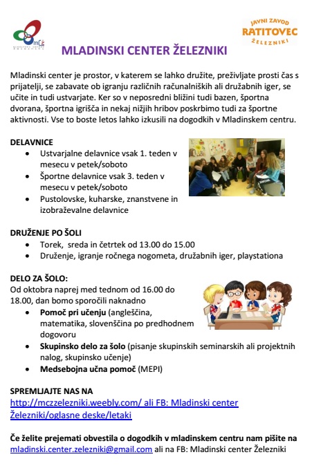 Mladinski center od 27.12.2011 naprej deluje v kletnih prostorih Bazena v Železnikih.