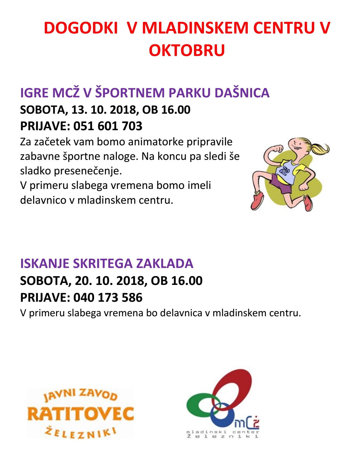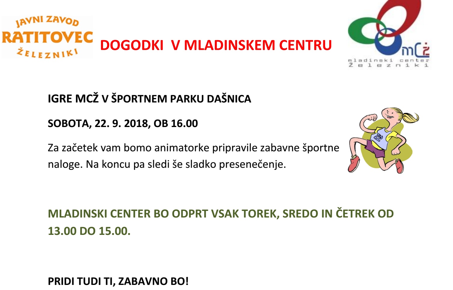 PROGRAM V LETU 2018 (za več informacij, klikni zgoraj na internetna stran MCŽ)