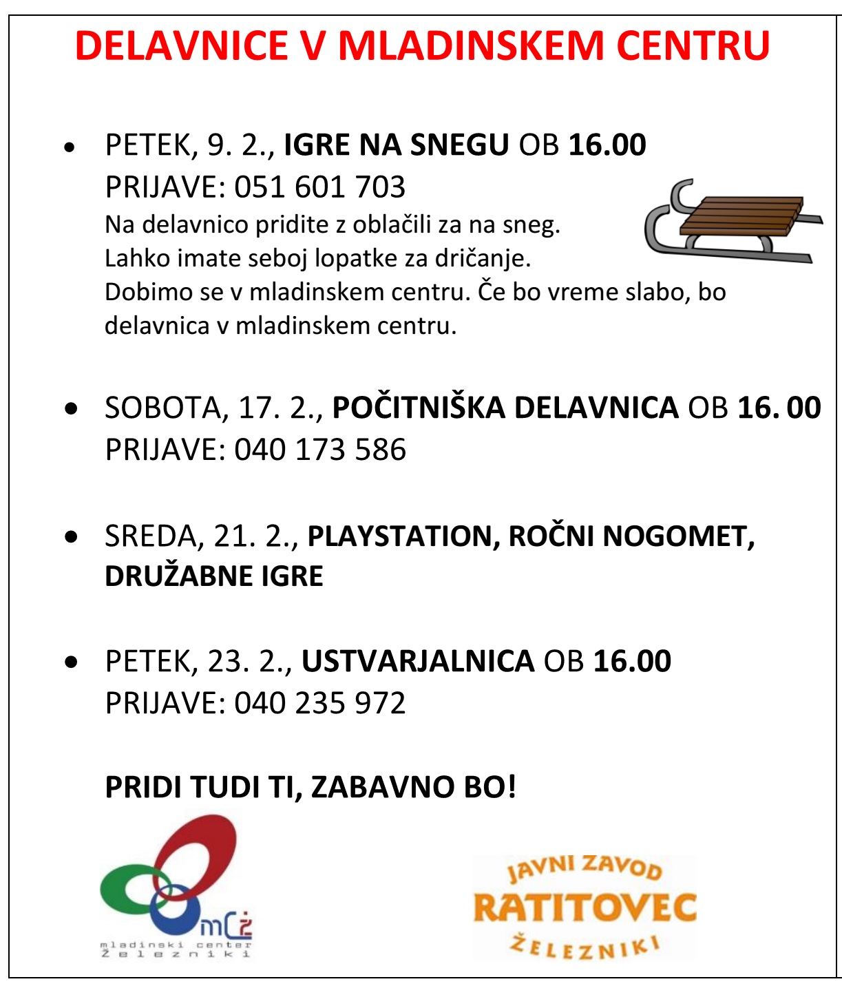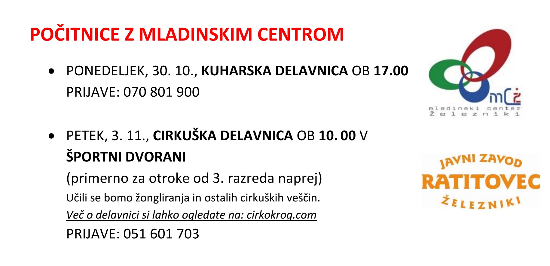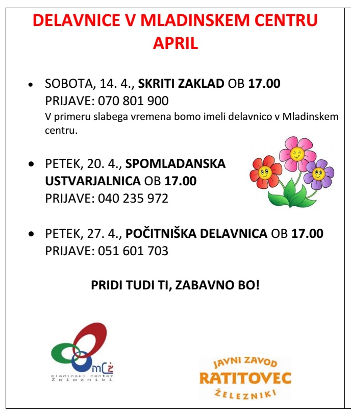 Za vse ostale informacije se v dopoldanskem času lahko obrnete na telefon 04 510 04 10!