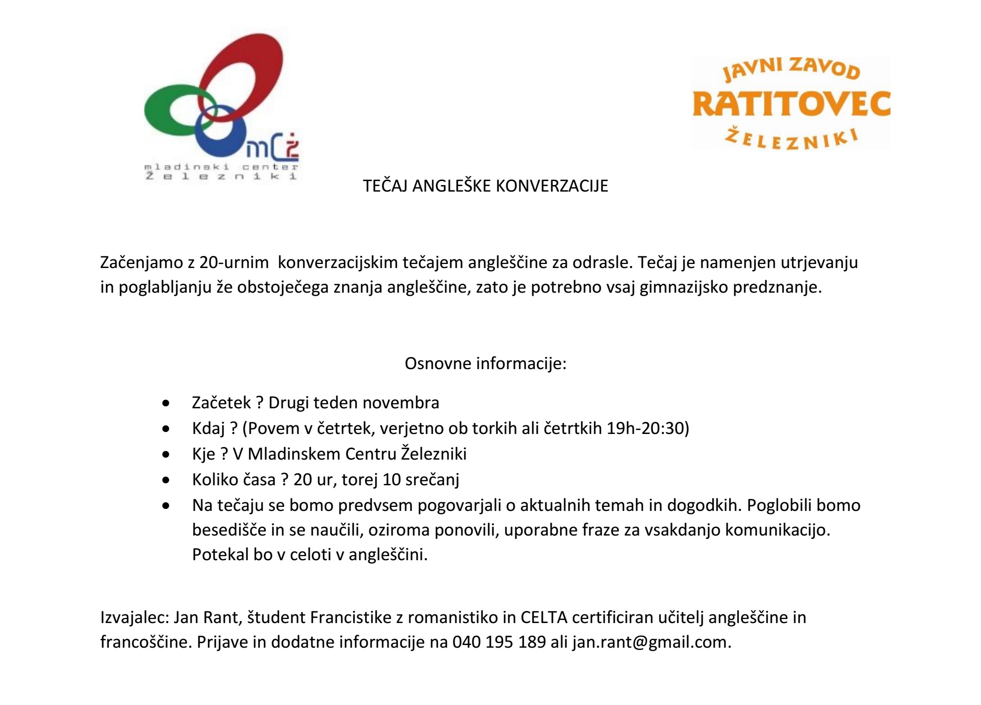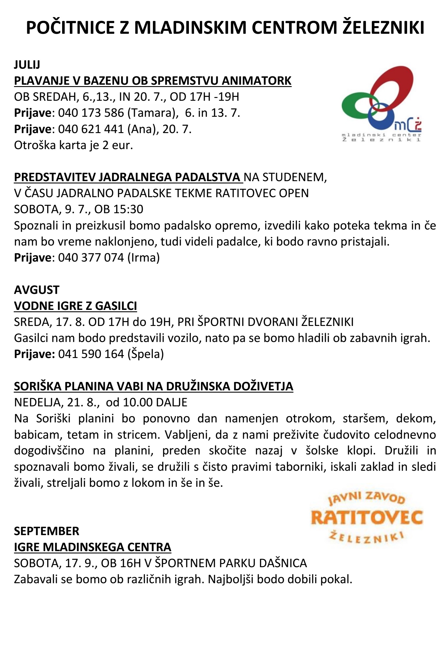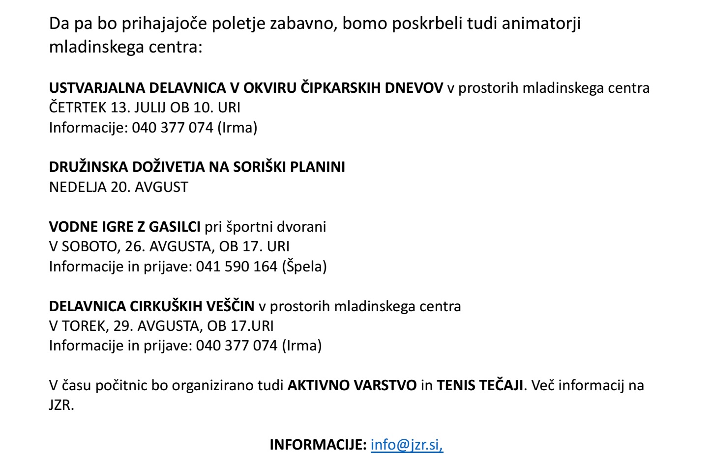 Za vse ostale informacije se v dopoldanskem času lahko obrnete na telefon 04 510 04 10!