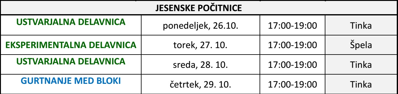 MESEČNI PROGRAM IN OTROŠKE DELAVNICE