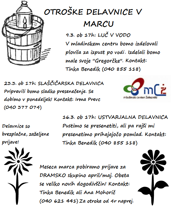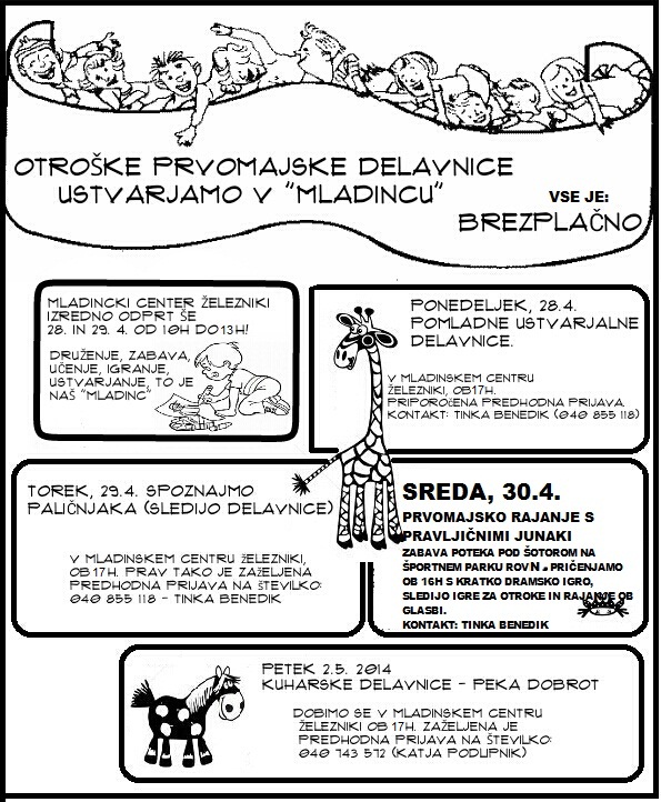Če imate željo izpeljati kakšno delavnico za otroke vam rade volje priskočimo na pomoč. Obrnite se na nas preko e maila : info@stara.jzr.si ali pa na telefon 04 510 04 10. Veseli vas bomo!