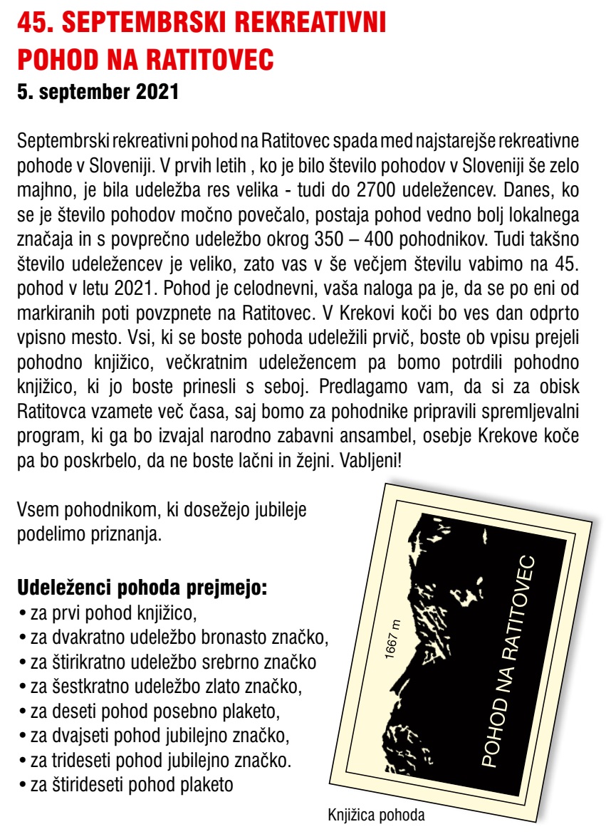45. septemberski rekreativni pohod na Ratitovec