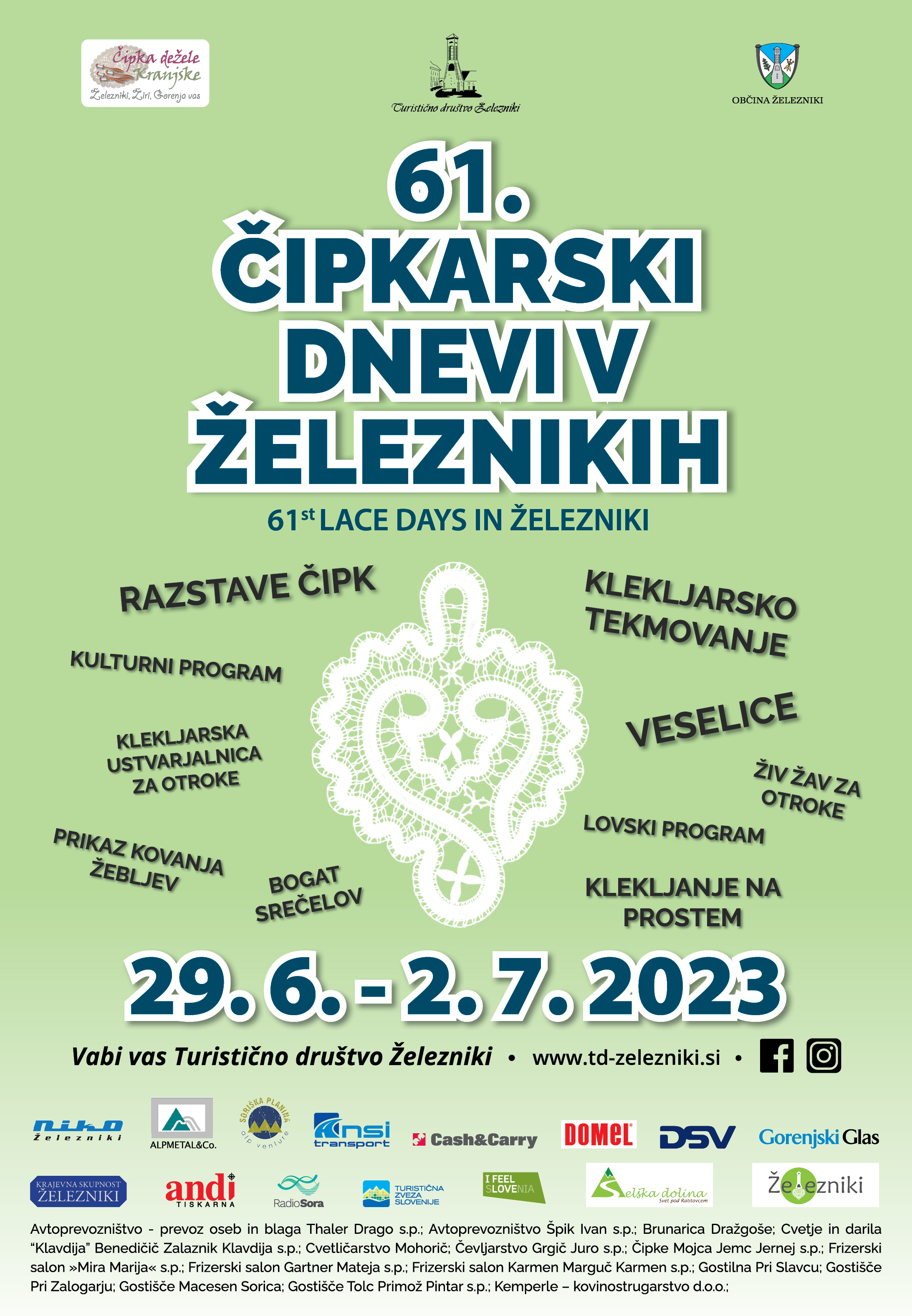 Od četrtka do nedelje, 29. 6. do 2. 7. 2023, vabljeni v Železnike na 61. Čipkarske dni