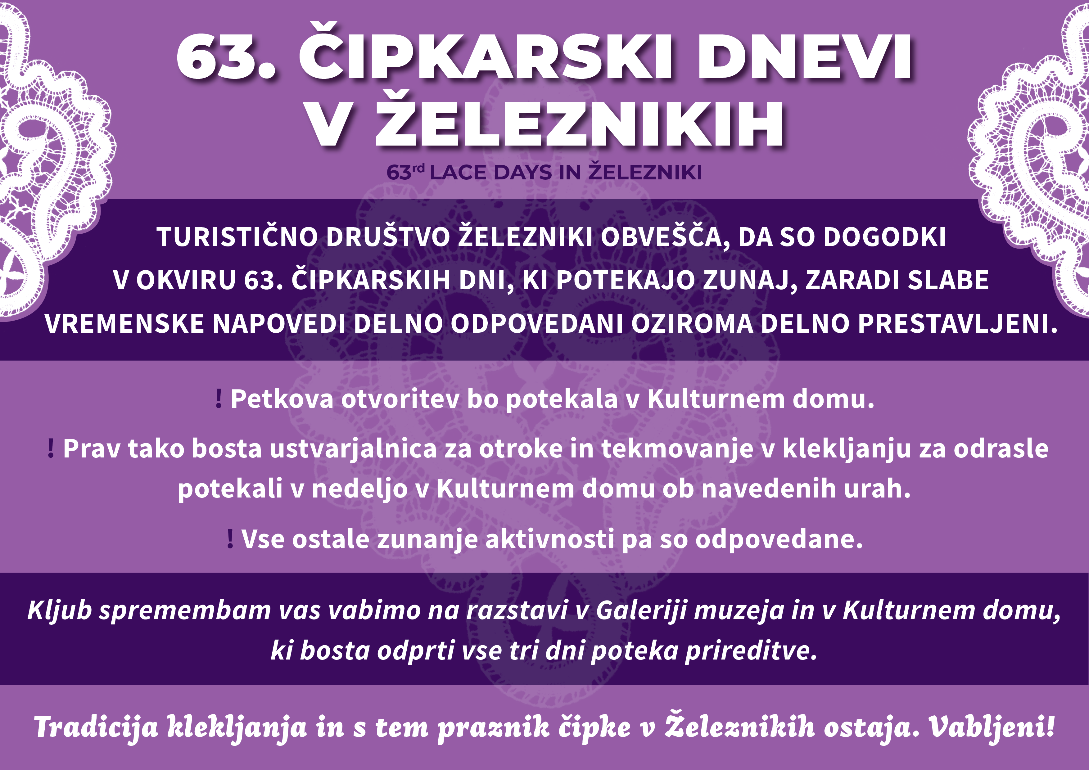so se 63. Čipkarski dnevi v Železnikih