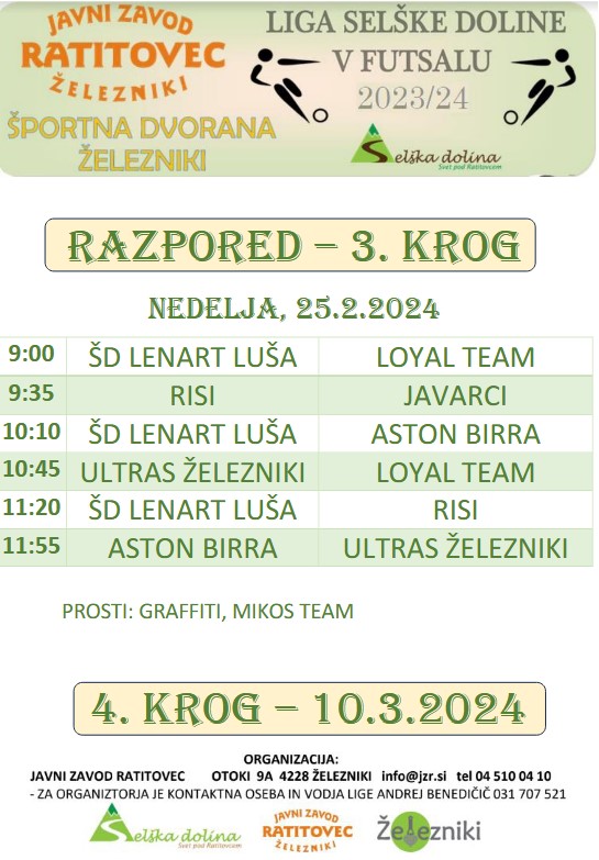 Vabljeni na ogled in navijanje za vašo ekipo.