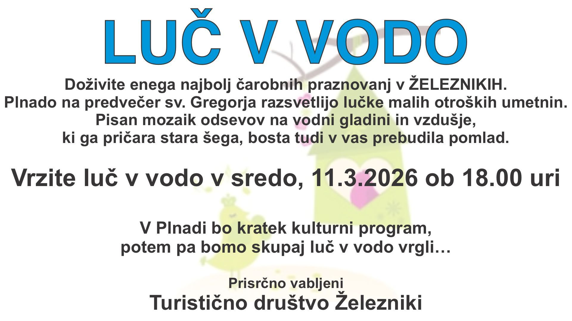 Ob 18.00 uri bo v Plnadi kratek kulturni program, potem pa bomo skupaj luč v vodo vrgli…