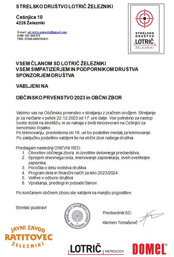Strelsko društvo Lotrič Železniki vas vabi, da se jim pridružite na OBČINSKEM PRVENSTVU in OBČNEM ZBORU. Selška dolina - Svet pod Ratitovcem Objavil Javni Zavod Ratitovec · 23 h · Selca praznuj