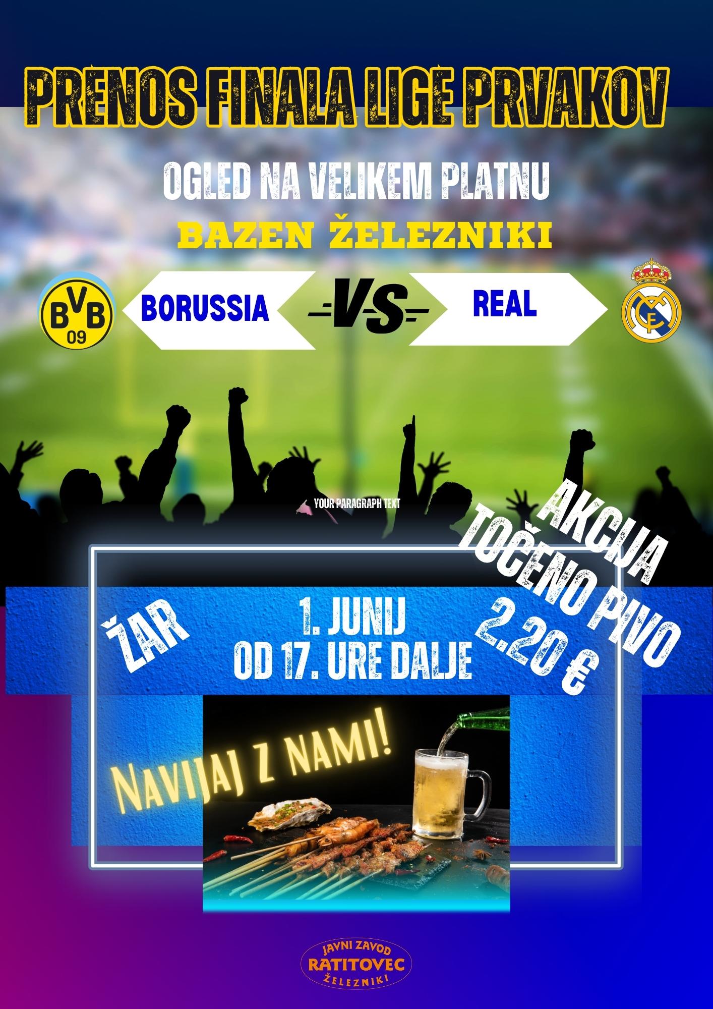 Ogled finala lige prvakov na velikem platnu