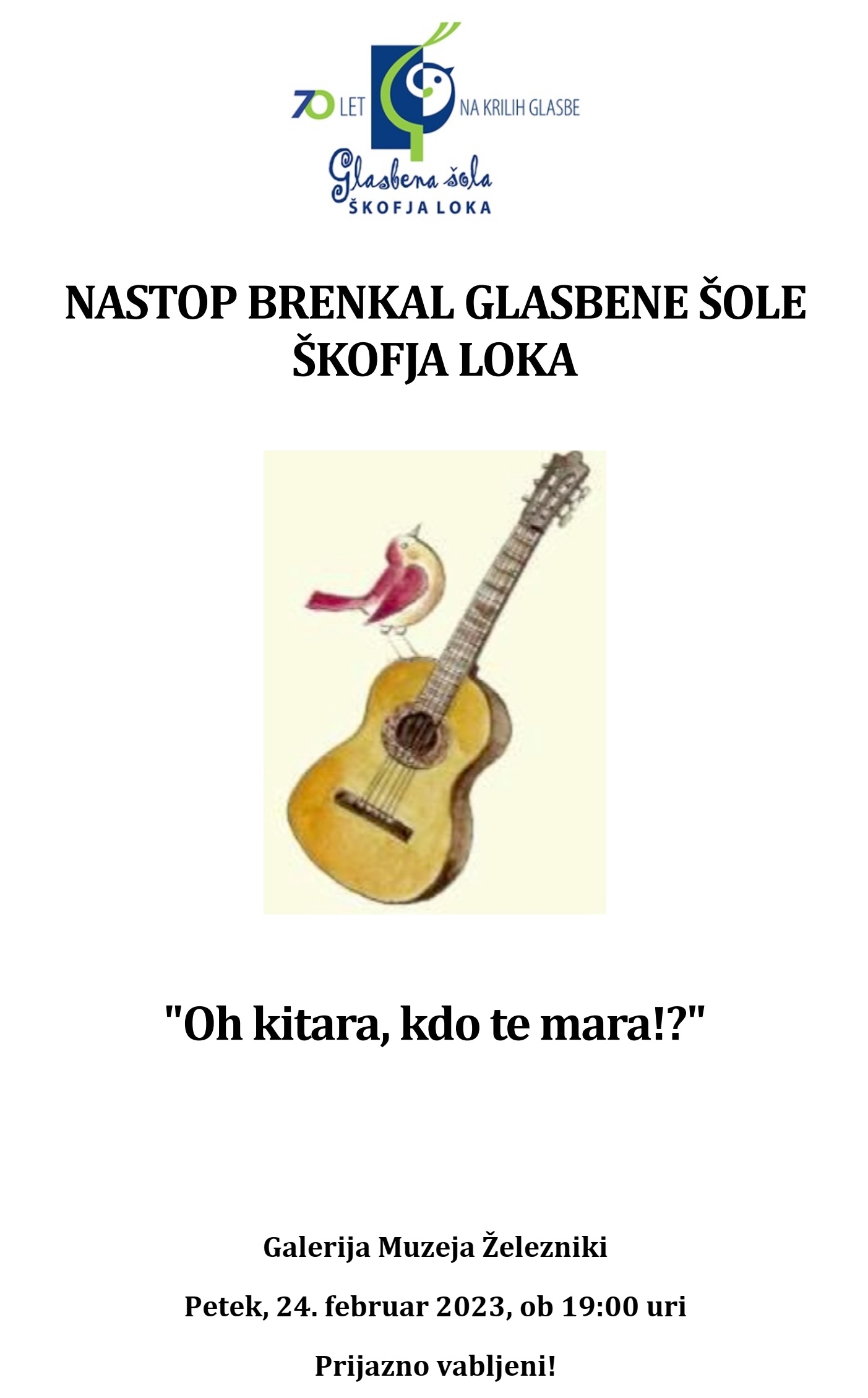 Vabljeni na nastop brenkal Glasbene Šole Škofja Loka, ki bo v petek, 24. februarja 2023, ob 19. uri v galeriji Muzeja Železniki.
