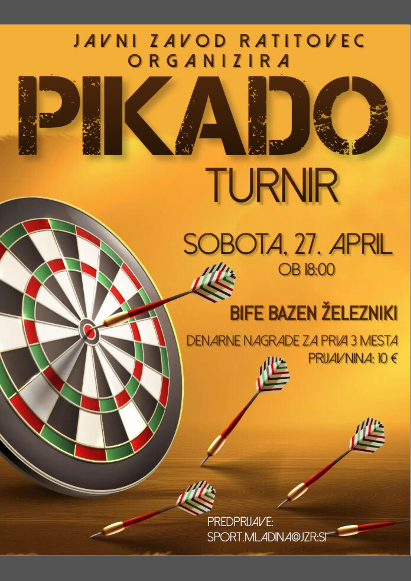 Turnir v pikadu bo v soboto, 27. aprila 2024, ob 18. uri.
