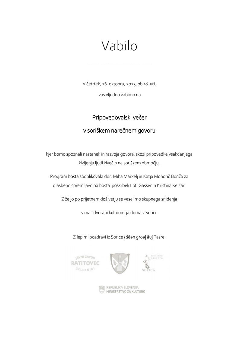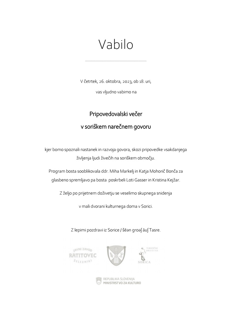 Vabljeni na pripovedovalski večer, 26. oktobra 2023, ob 18. uri v Sorici.