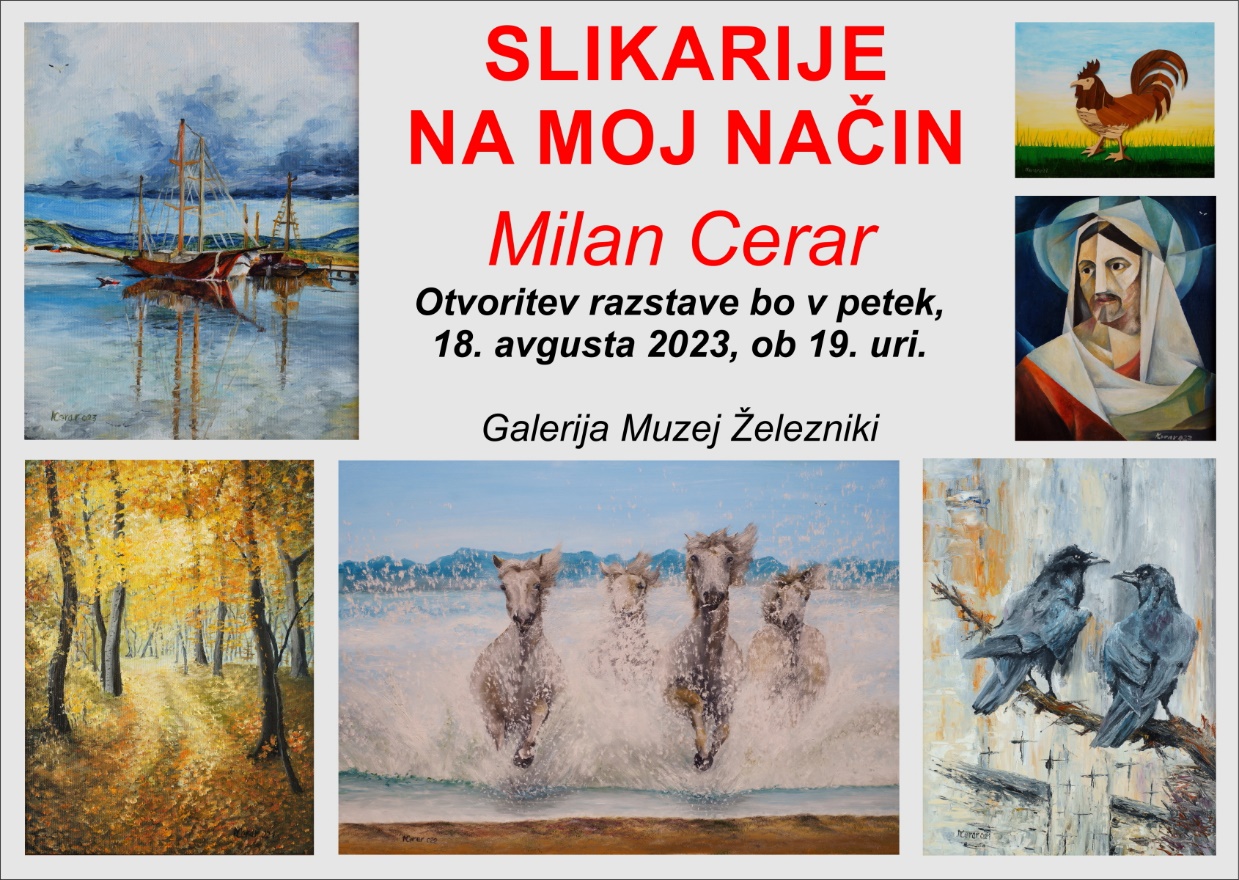 Vabljeni na odprtje slikarske razstave "Slikarije na moj način", slikar Milan Cerar.