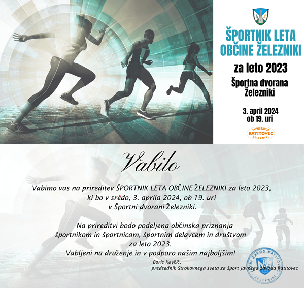 Podelitev priznanj športnikom leta 2023 bo v Športni dvorani v sredo, 3. aprila 2024, ob 19. uri.