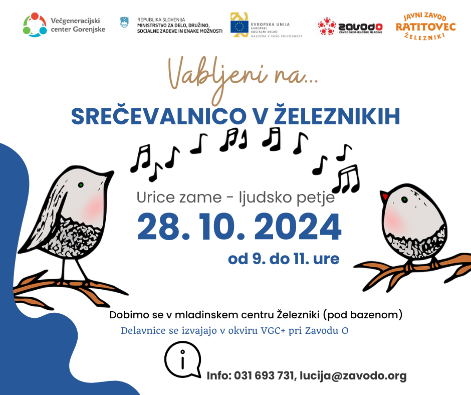 Javni zavod Ratitovec vabi vse občanke in občane na SREČEVALNICO, ki bo potekala v ponedeljek, 28. oktobra od 9. do 11. ure v Mladinskem centru Železniki.