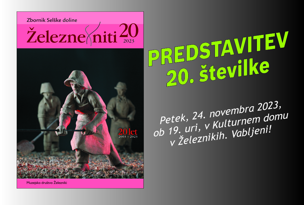Predstavitev 20. številke Železnih niti bo v petek, 24. novembra 2023, ob 19. uri v Kulturnem domu Železniki. Vabljeni.