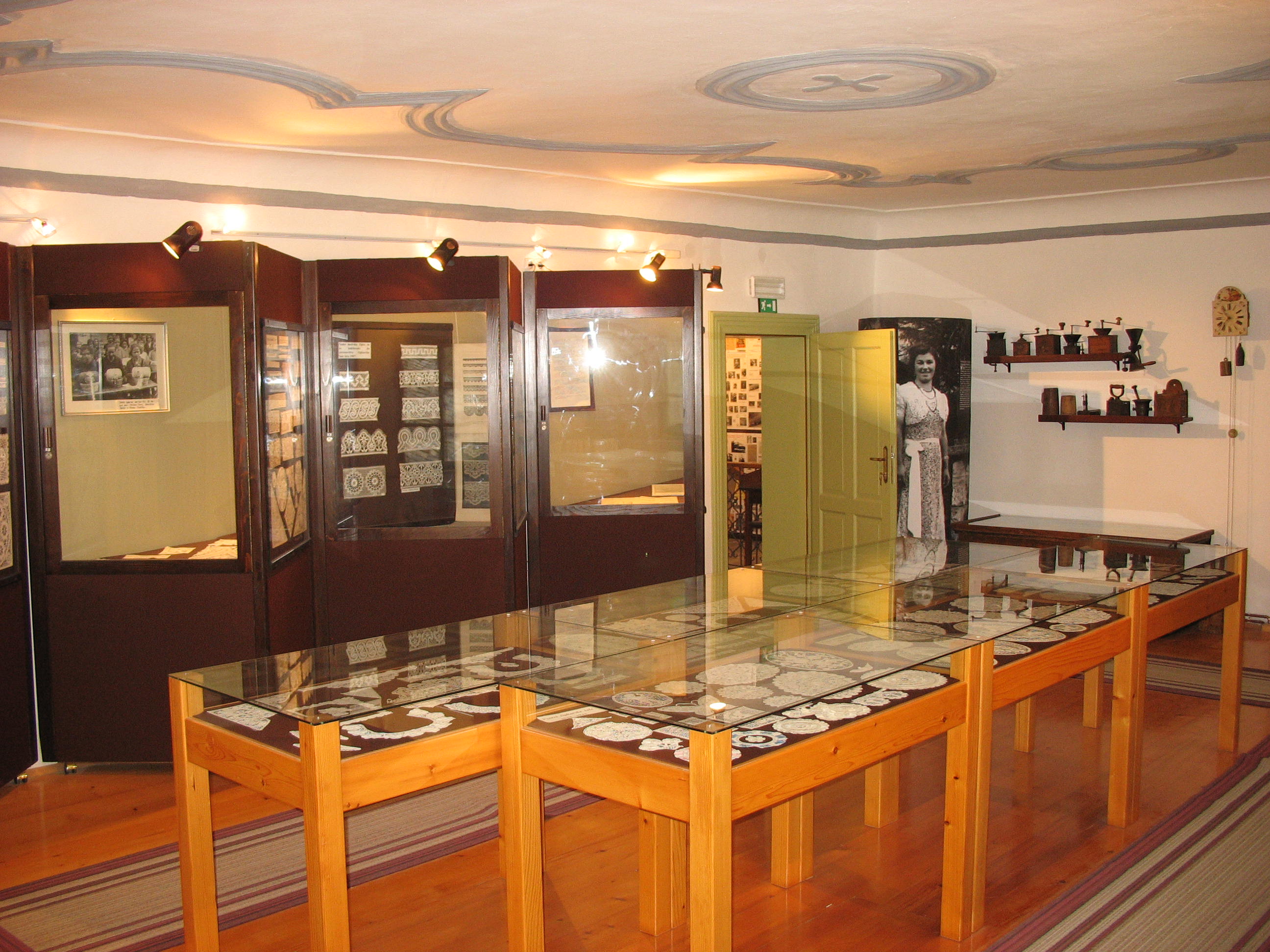 Znanje izdelovanja čipk (klekljanja) je v Železnike prišlo iz Idrije okoli leta 1881 in tu hitro našlo svoje mesto. Že leta 1907 je bila ustanovljena Čipkarska šola. Zbirka prikazuje zgodovinski razvoj čipke od preprostih čipk "na meter", narodne čipke do zapletenih tankih prtičkov in oblačil. V zbirki pa je tudi nekaj etnoloških predmetov opreme stare kuhinje in drugega pohištva. |
