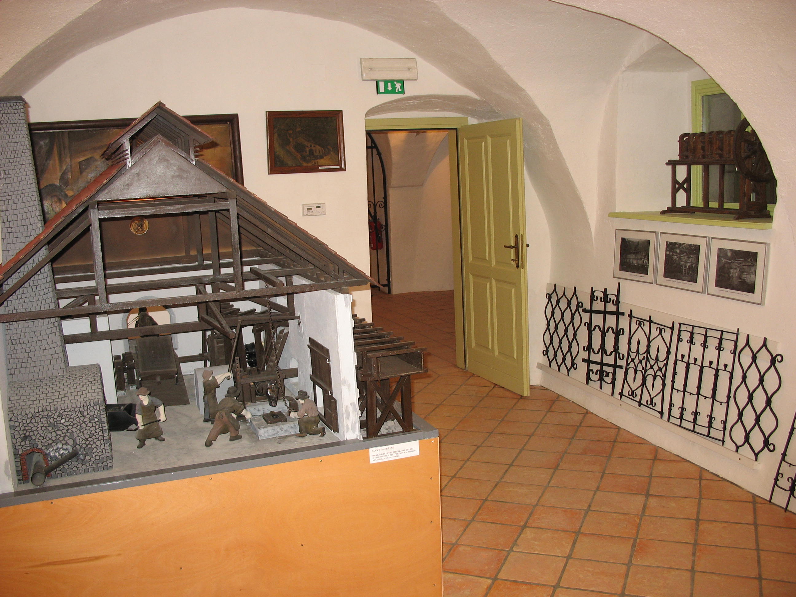 Pri plavžu je stal tudi predelovalni obrat za surovo železo in skupaj s plavžem tvoril tako imenovano fužino. V zbirki je stoji maketa tega spremljajočega obrata, v kateri je delovalo veliko kladivo na vodni pogon, imenovano tudi "norec". Pod kladivom so velike kose surovega železa prekovali v manjše in jih kovali tako dolgo, da je železo postalo kovno. Zbirka prikazuje tudi izdelke, ki so jih kovači kovali poleg žebljev, ki so bili glavni železarski proizvod kraja. |