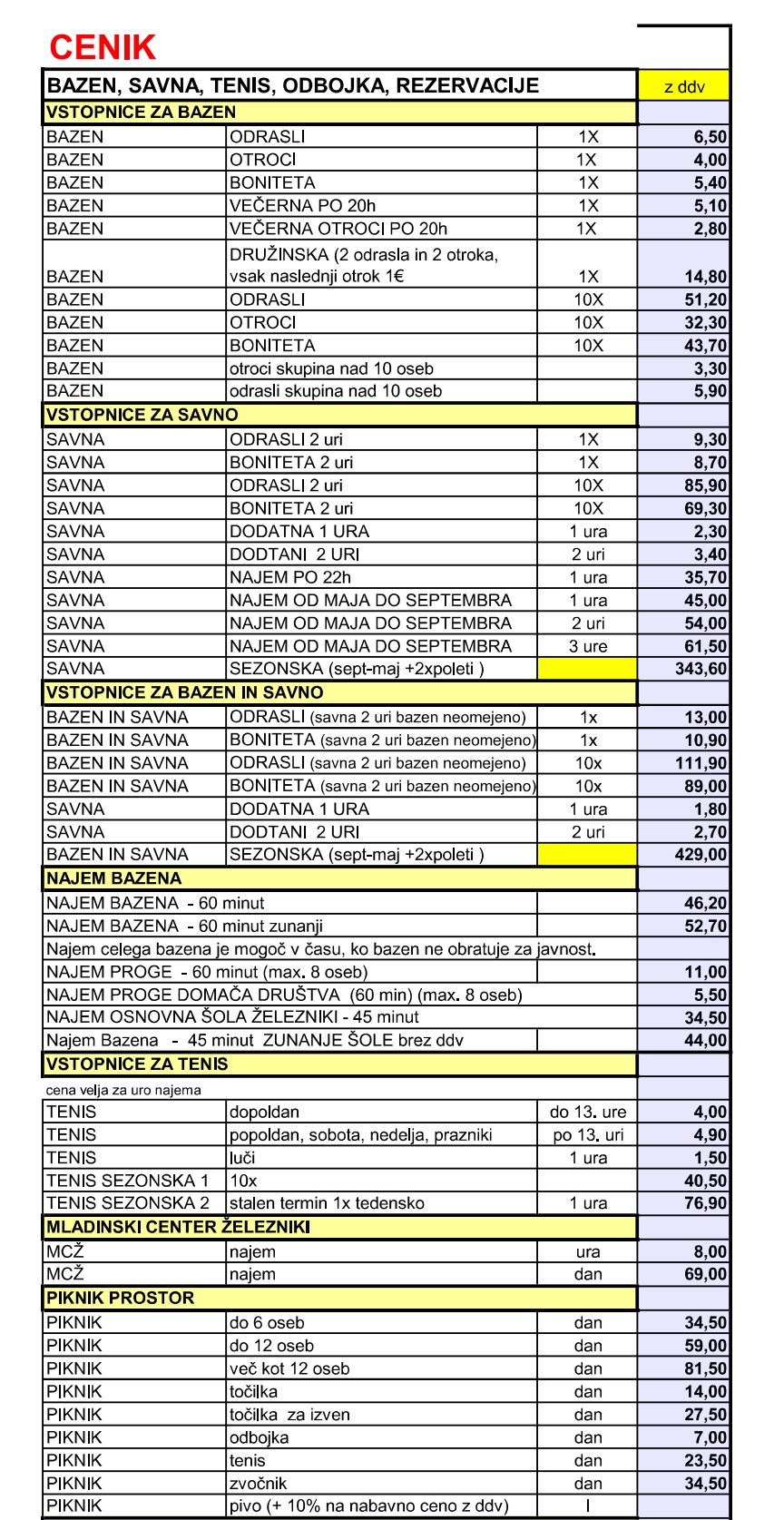 - v primeru najema piknik prostora je možen tudi brezplačen najem igrišča za odbojko na mivki, kakor tudi ostalih igrišč na športnem parku