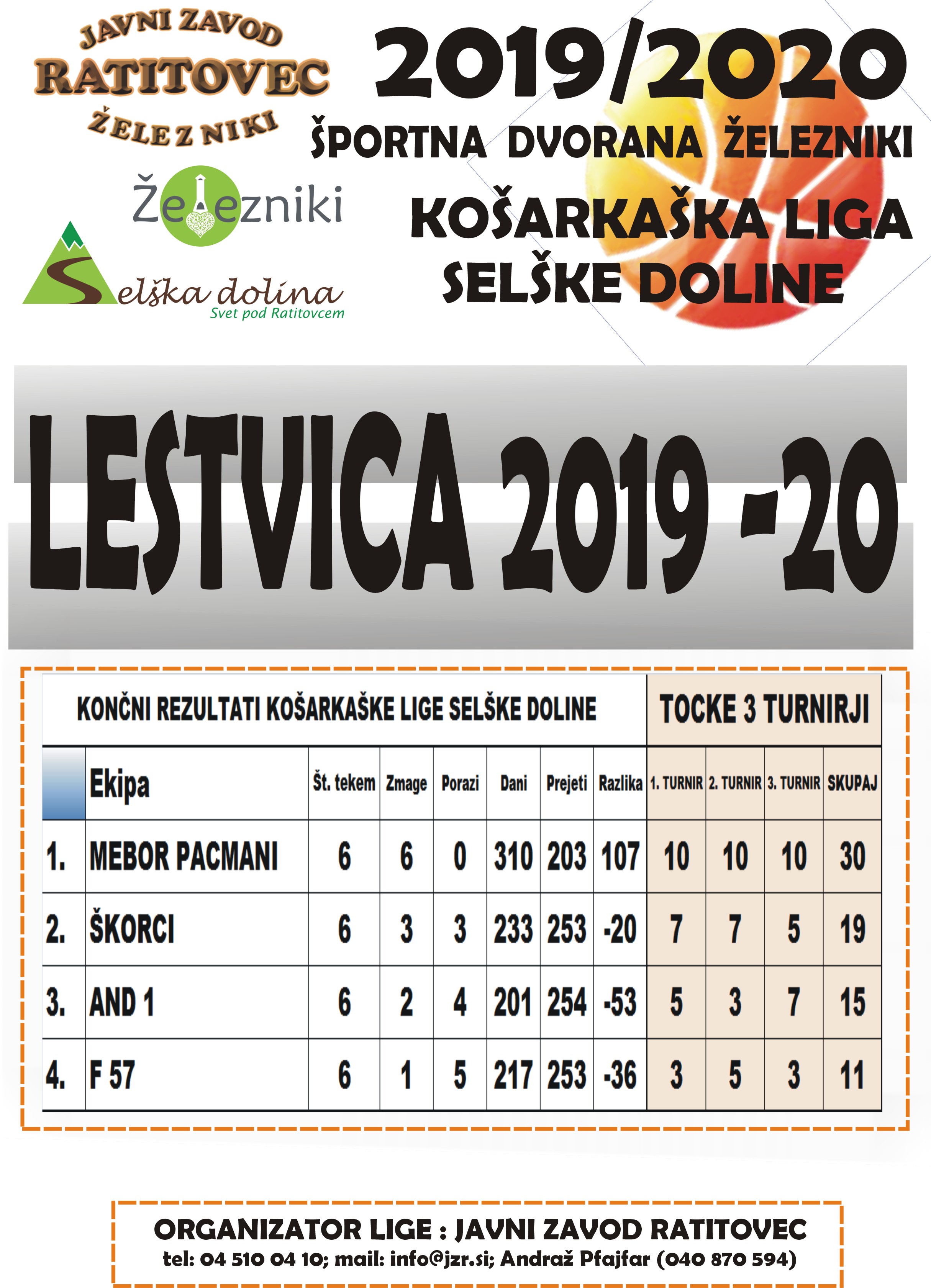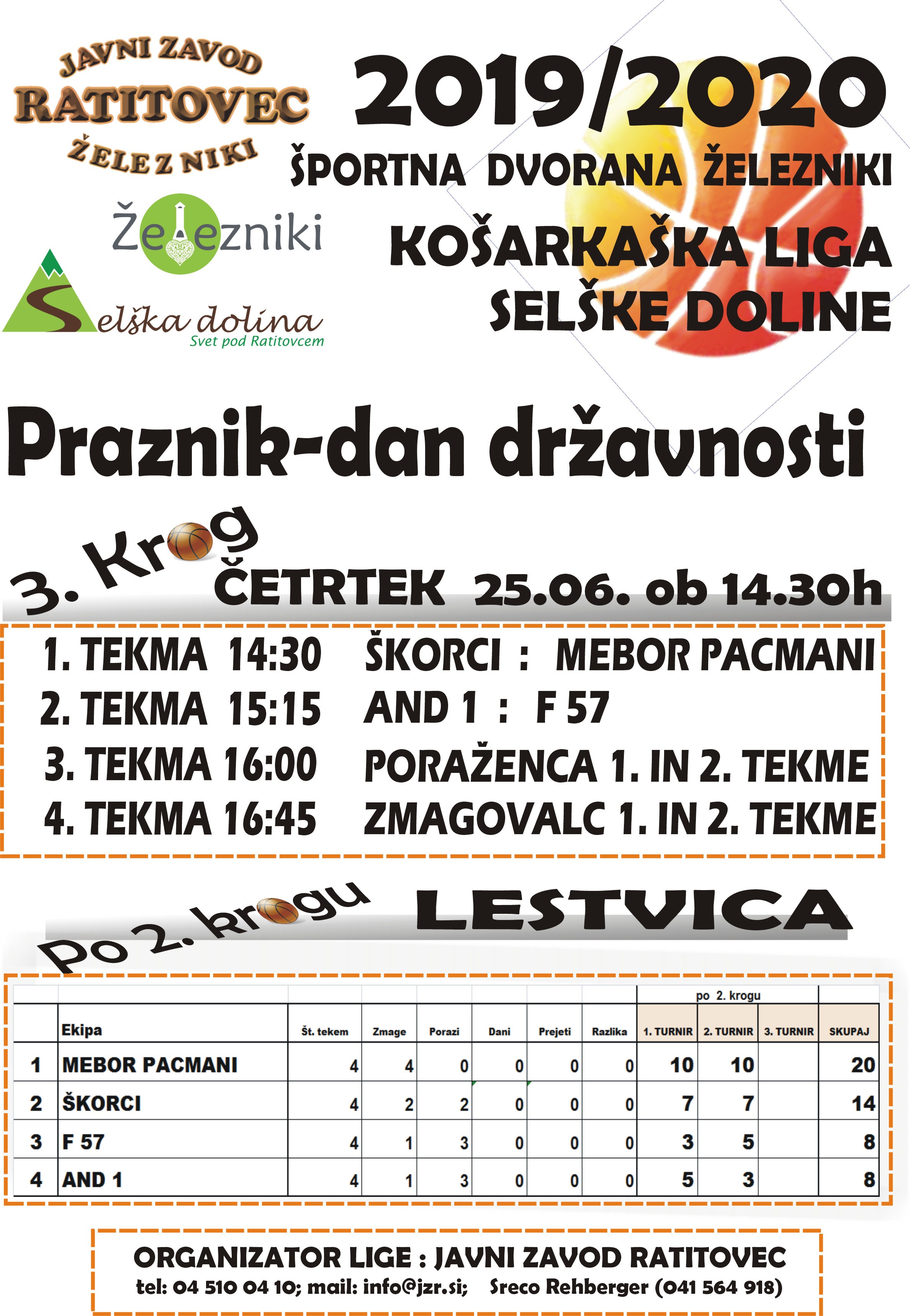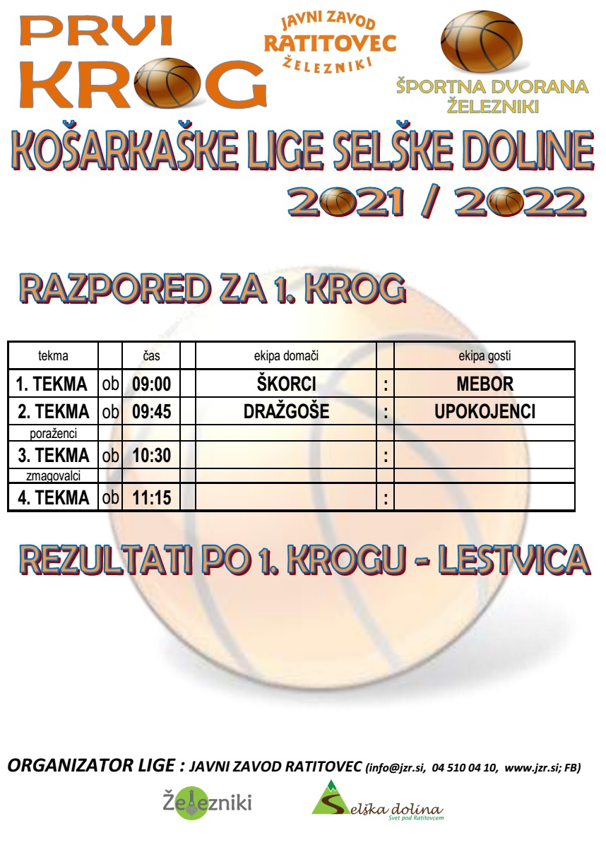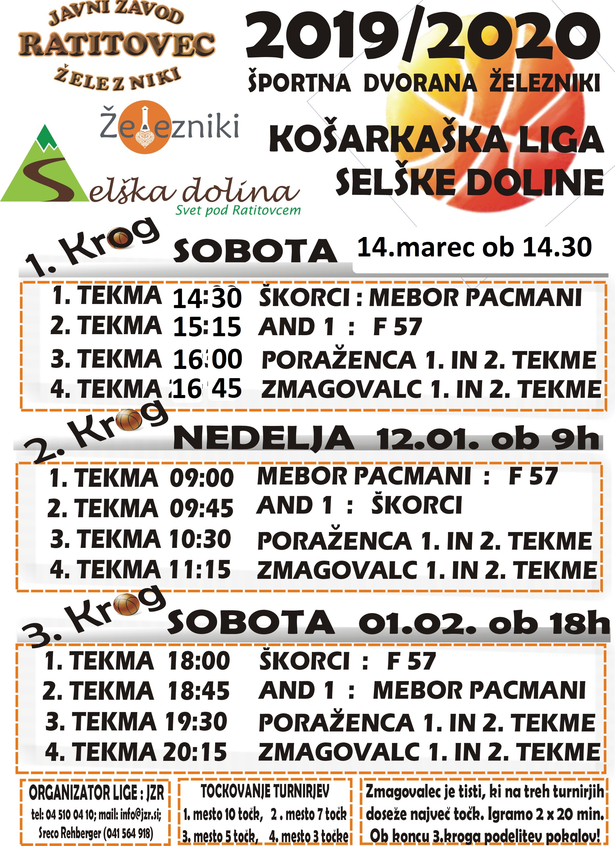 RAZPORED KOŠARKAŠKE LIGE SELŠKE DOLINE 2019/2020