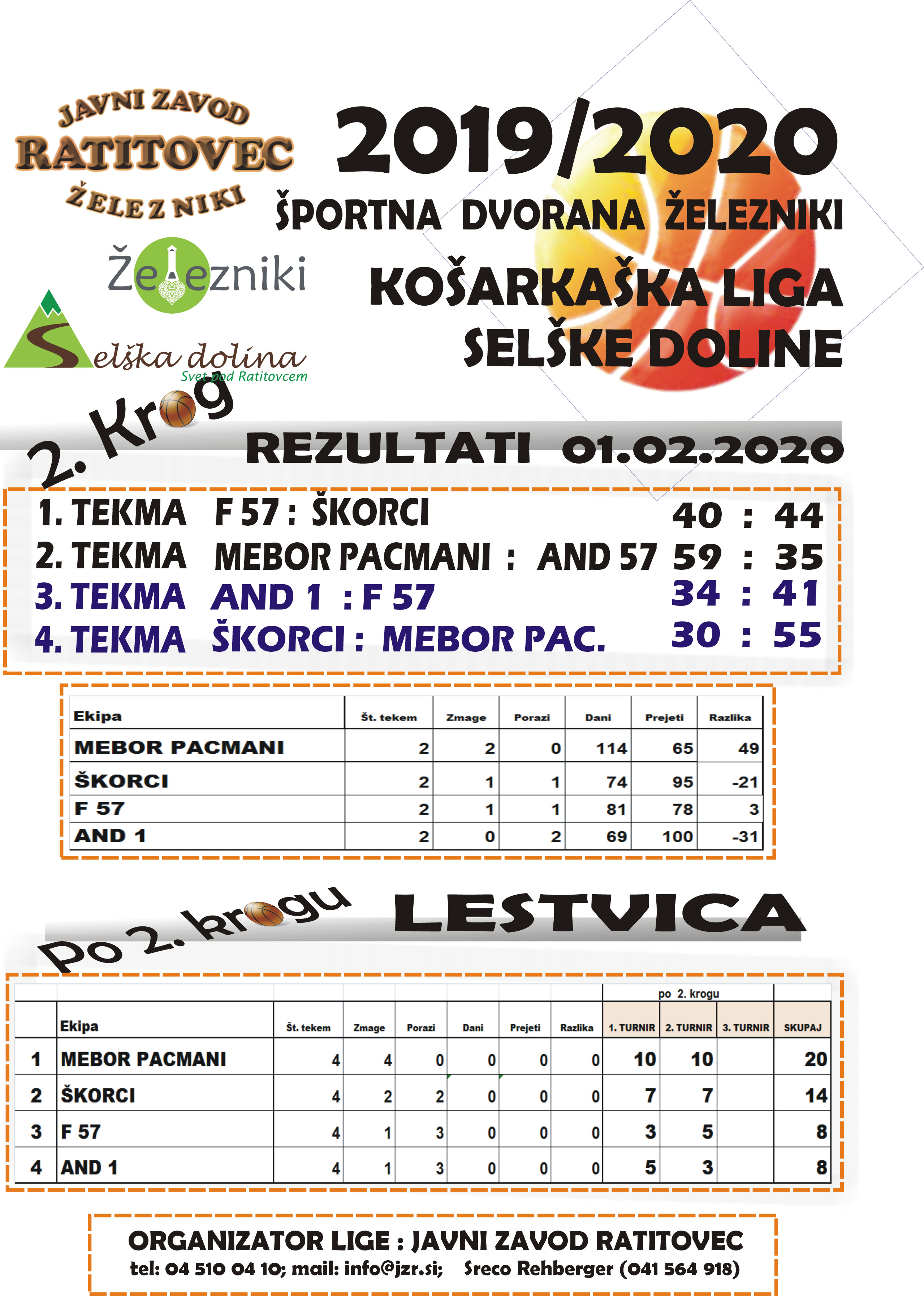 2.KROG 1.2.2020 (sobota ob 18h) REZULTATI LESTVICA NAJBOLJŠIH STRELCEV