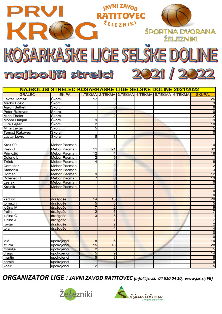 2. krog 10.4.2022 razpored , 2 krog rezultati , lestvica strelci 22