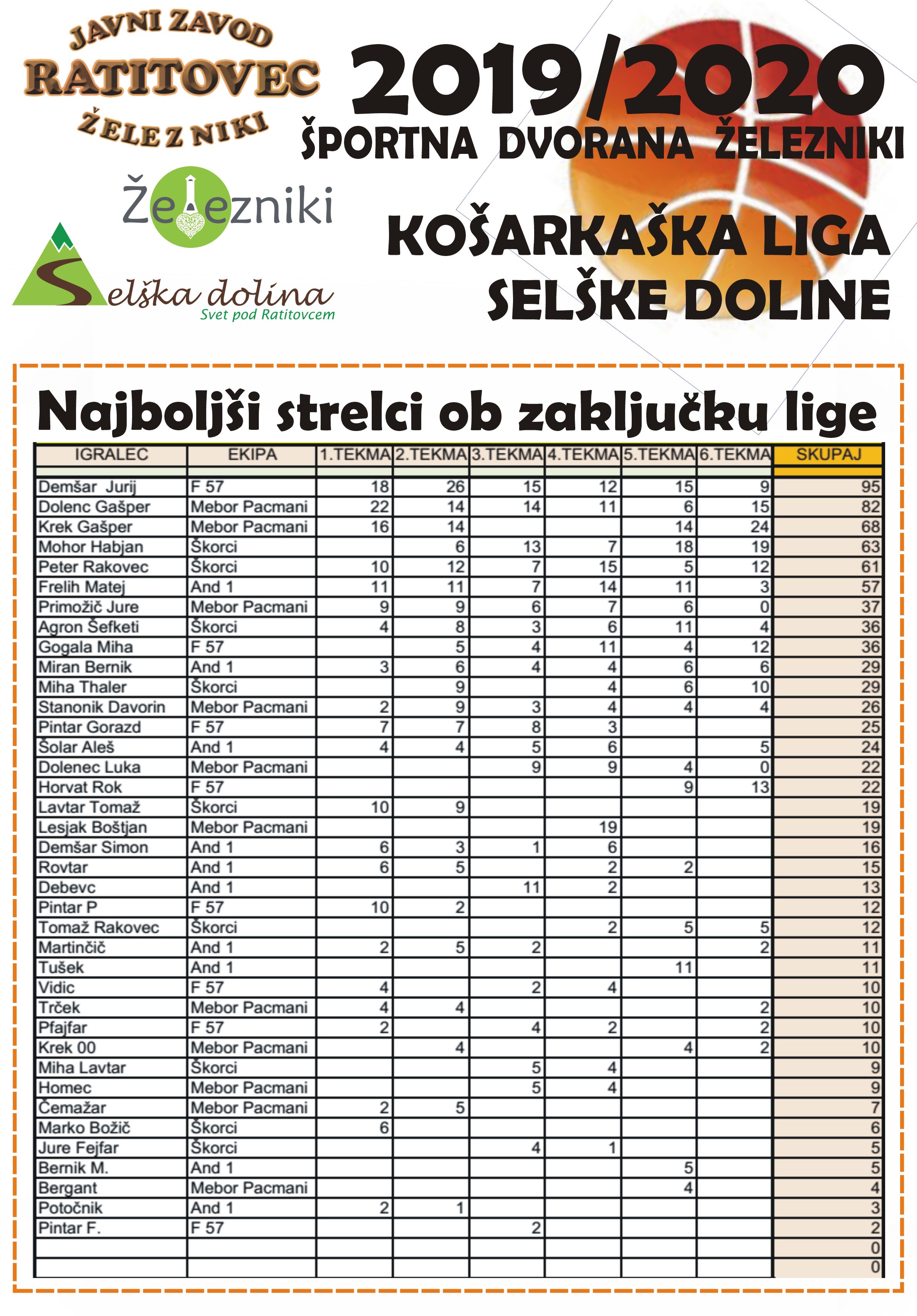 KONCNI RETULTATI LESTVICA NAJBOLJŠIH STRELCEV