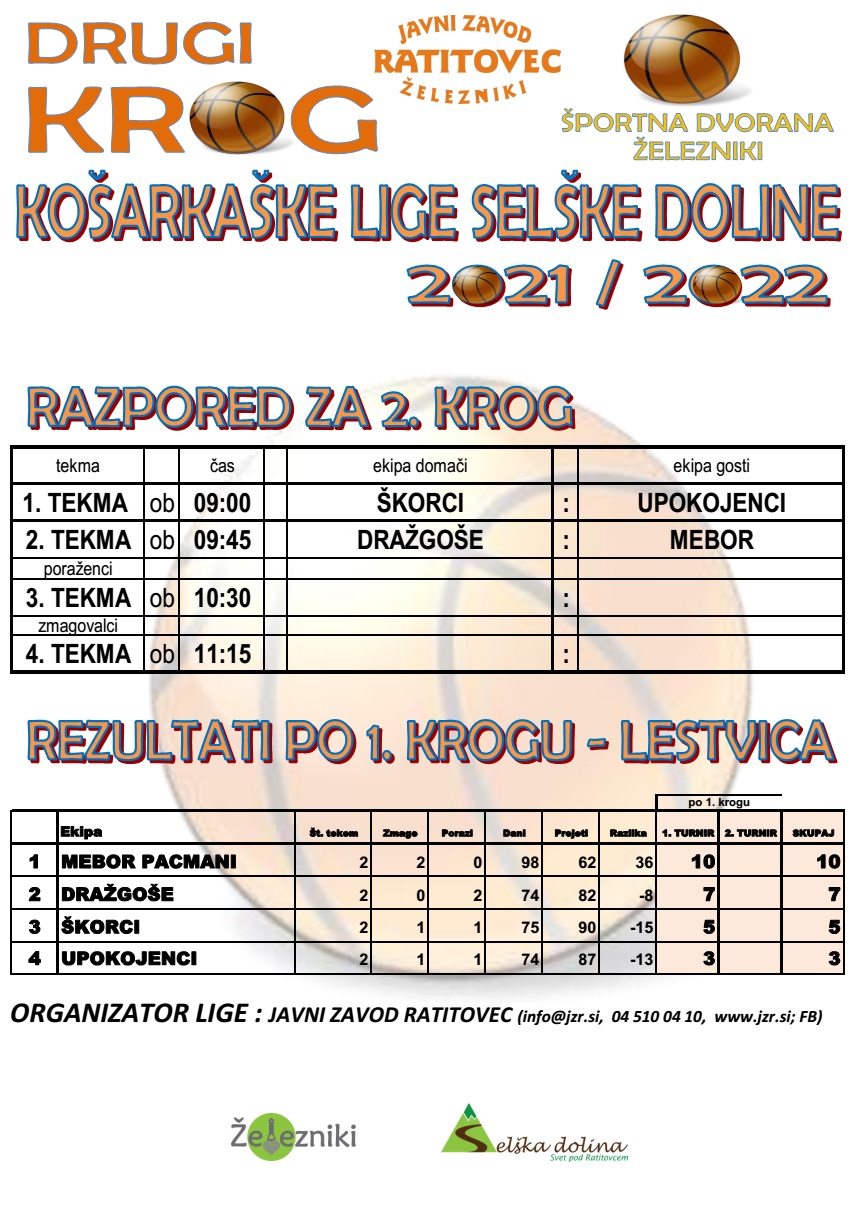 RAZPORED-2.KROG košarka 2025.pdf REZULTATI, LESTVICA KOŠARKA 2025 2KROG.pdf