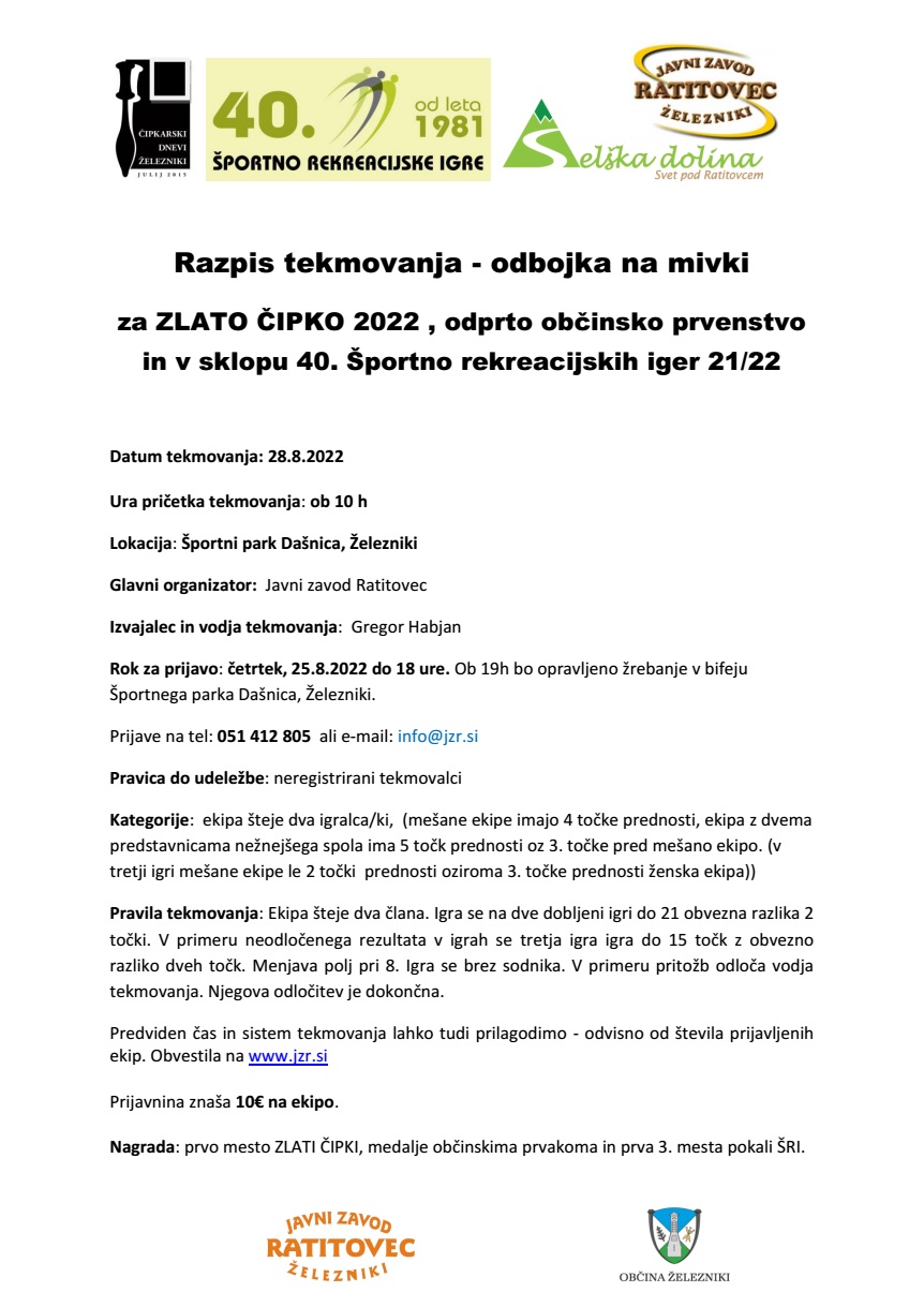 Razpis tekmovanja odbojka na mivki za ZLATO CIPKO 2022.pdfTEKMOVANJA ZA ZLATO ČIPKO